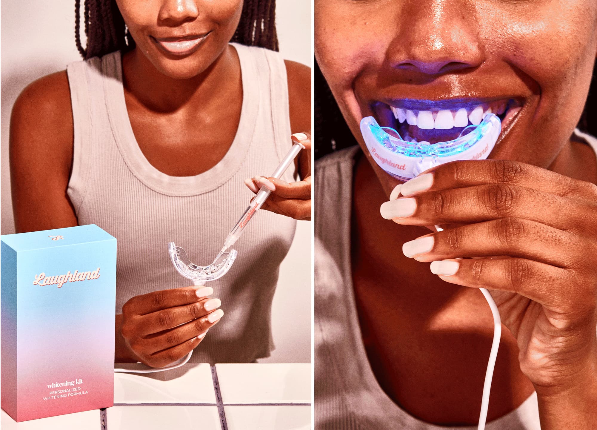 LaughLand also mimics the dentist-office whitening experience with its LED curing light technology, giving users professional results from the comfort of their homes—all at a fraction of the cost.